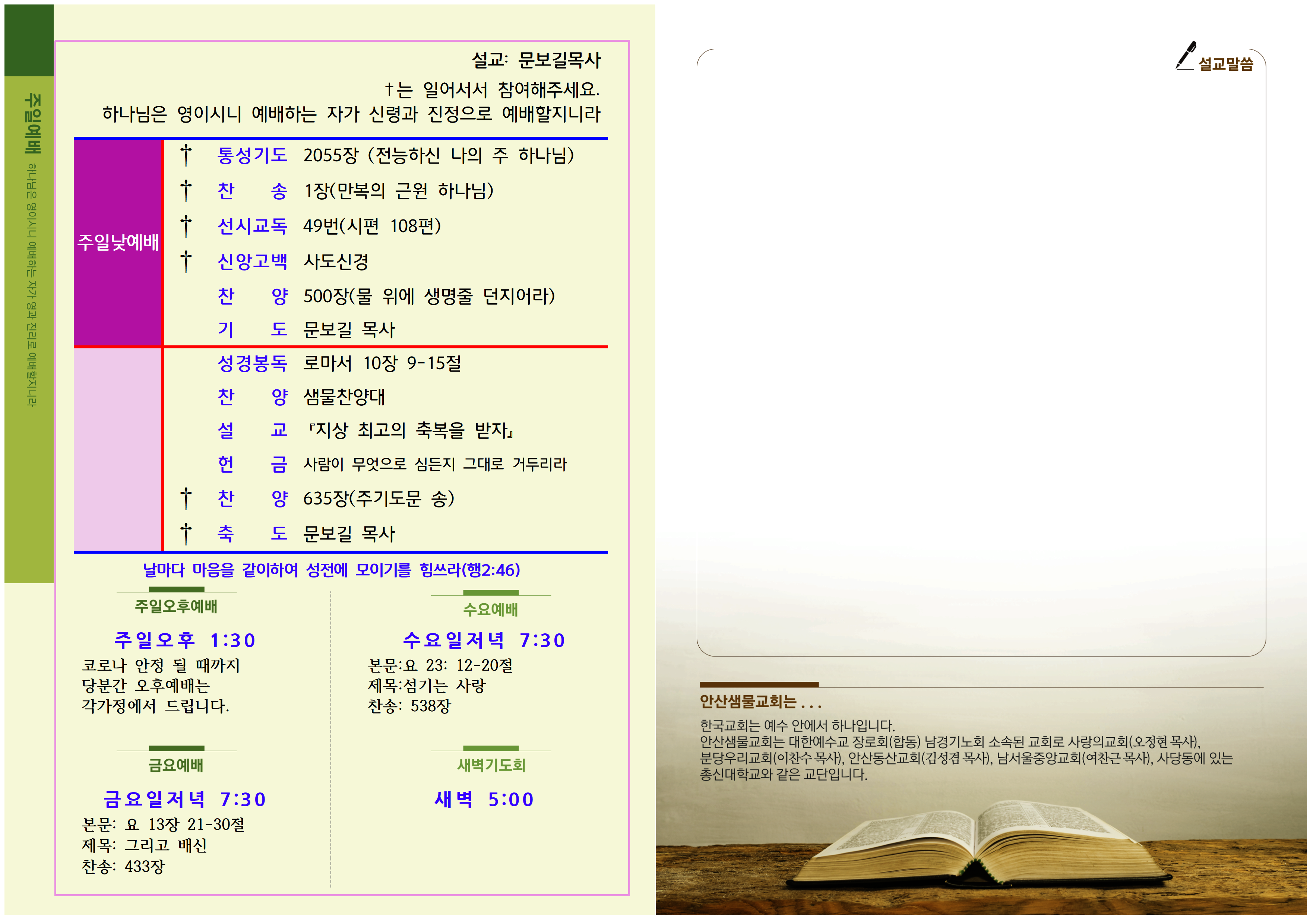 해당 게시물의 주보는 안산샘물교회에 협조를 구하였습니다.