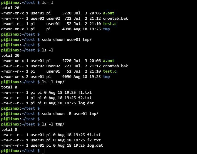 sudo chown user01 tmp/