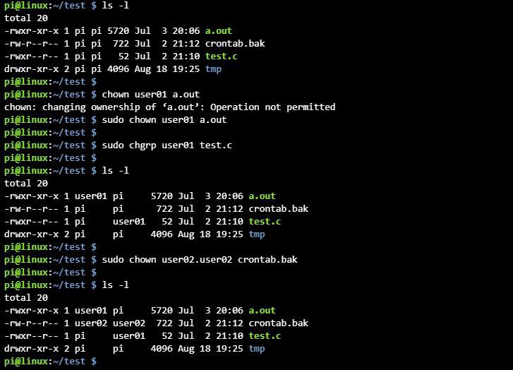 파일 소유권 변경 (chown 명령어, 루트 사용자만 가능)