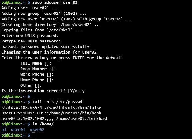 sudo adduser user02(생성할 유저ID와 폴더명)