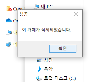 4. 프로그램이 실행되면 메뉴에서 삭제를 선택하고 확인을 눌러줍니다.