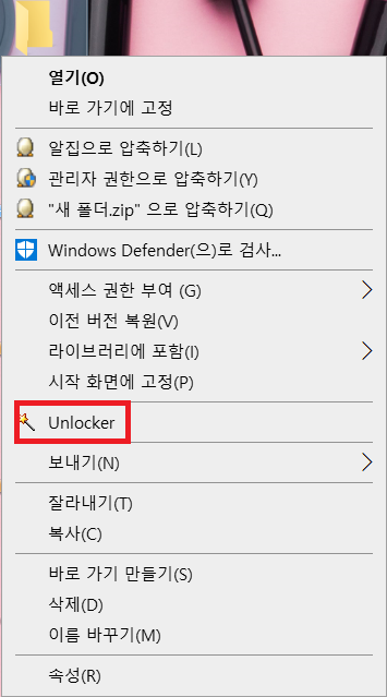 2. 지워지지 않는 파일에 마우스 오른쪽 키를 눌러 메뉴창을 엽니다.