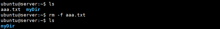 | rm -f aaa.txt | aaa.txt 삭제시 여부를 묻지 않고 강제 삭제(f : force) |
