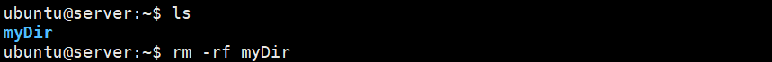 myDir 디렉터리와 그 하위에 모든 파일 및 폴더들을 삭제합니다. r은 recursive의 약자로 재귀적으로 트리구조들 타고 들어가면서 삭제한다고 이해하면 됩니다. |